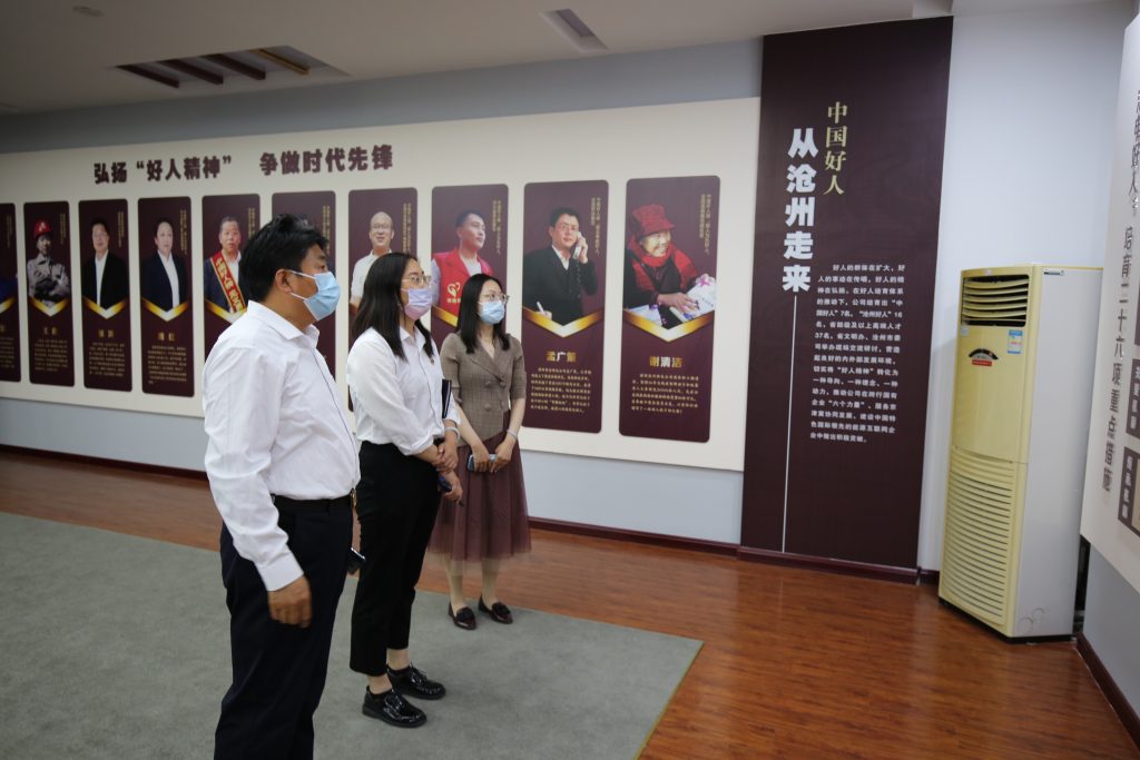 最后,袁倉立帶領王艷鳳一行參觀滄州供電公司黨建文化長廊,對企業(yè)發(fā)展歷程、道德講堂、滄電好人精神等內容進行講解。